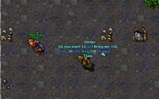 Questa zaczynamy poprzez rozmowę z NPC, który chce od nas: 150 Fish, 50 Fire Bug, 150 Dragon Claw.